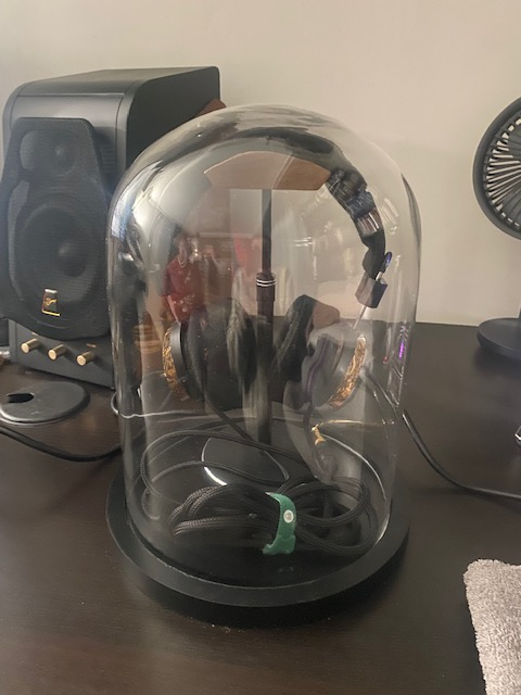 Grado the hemp, hedband & pads beautifulaudio, support de casque JINSERTA hauteur réglable Classic Black-Walnut, Cloche en verre socle noir d23xh30.5cm (zodio)
