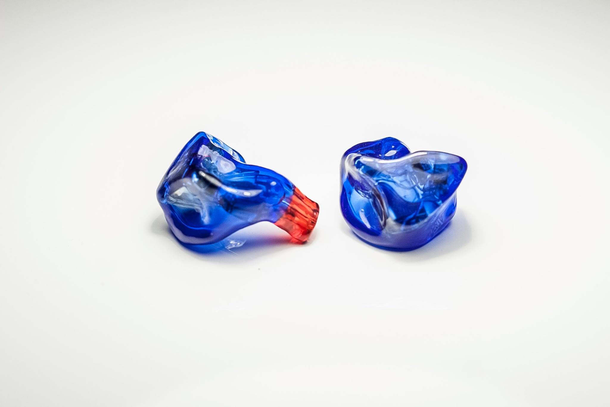 Tuned EarSonics S-EM6, remolded in Blue Transparent acrylic, right red canal + Linum T2 connectors.