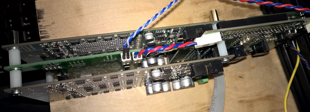 The muting board has a second relay, a top connector and an additional output header installed.