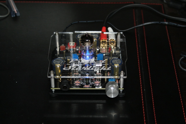 Project Starlight de Garage 1217, ici avec un tube 12AU7 ECC802 RAYTHEON BALDWIN Long Black-Plates, relié à un Hifimediy DAC SABRE USB