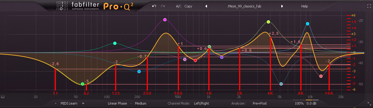 Courbe Meze 99 pour EQ 10 bandes DAP